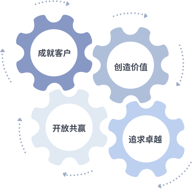 成就客户是一切决策的出发点,创造价值是衡量所有工作的标准,追求卓越是bifa必发做事做人的态度,开放共赢是bifa必发的格局也是最终的结果。价值观的齿轮环环相扣,推动着组织里的每个人不断向前。